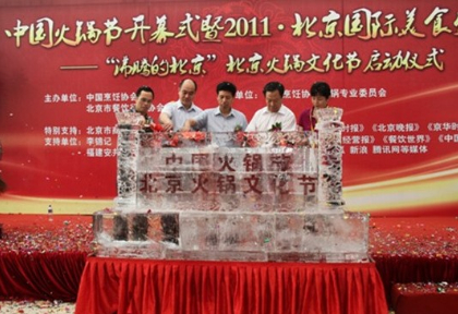中國烹飪協(xié)會(huì)副會(huì)長劉秀軍,中國烹飪協(xié)會(huì)副會(huì)長、北京餐飲行業(yè)協(xié)會(huì)會(huì)長湯慶順,北京市商務(wù)委員副巡視員趙利宗等出席了開幕儀式。所謂冰火不容,現(xiàn)場卻以冰雕啟動(dòng)剪彩儀式,火引冰薪、融化了原本屬于夏日的標(biāo)志,火鍋突圍、人們的熱情讓會(huì)場頓時(shí)直達(dá)沸點(diǎn)。