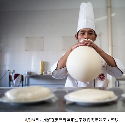 日前,劉輝在上海大世界吉尼斯紀(jì)錄挑戰(zhàn)中,甩出一根1918米的面,打破原“南詔一根面”1704米的世界紀(jì)錄,同時用面團(tuán)吹出直徑1.5米的“氣球”,獲得“最長一根面”和“直徑最大的面團(tuán)氣球”兩項上海大世界吉尼斯紀(jì)錄。22歲的天津青年職業(yè)學(xué)院烹飪系教師劉輝,來自山西太原,學(xué)習(xí)面食技藝已經(jīng)5年多,堪稱面食“達(dá)人”。