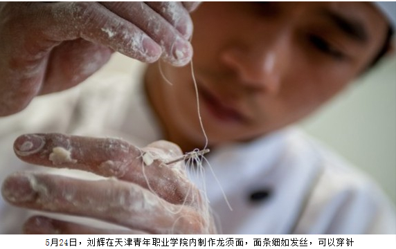 [摘要] 22歲劉輝是一個面食“達(dá)人”,目前已經(jīng)創(chuàng)造兩項吉尼斯紀(jì)錄。他可以吹氣球,他制作的龍須面,面條細(xì)如發(fā)絲,可以穿針。劉輝在上海大世界吉尼斯紀(jì)錄挑戰(zhàn)中,甩出一根1918米的面,打破原“南詔一根面”1704米的世界紀(jì)錄,同時用面團(tuán)吹出直徑1.5米的“氣球”,獲得“最長一根面”和“直徑最大的面團(tuán)氣球”兩項上海大世界吉尼斯紀(jì)錄。22歲的天津青年職業(yè)學(xué)院烹飪系教師劉輝,來自山西太原,學(xué)習(xí)面食技藝已經(jīng)5年多,堪稱面食“達(dá)人”。