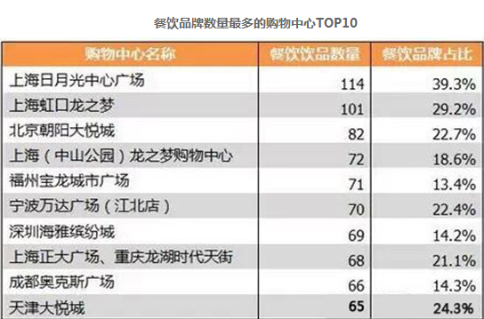 餐飲品牌數(shù)量最多的購(gòu)物中心TOP10