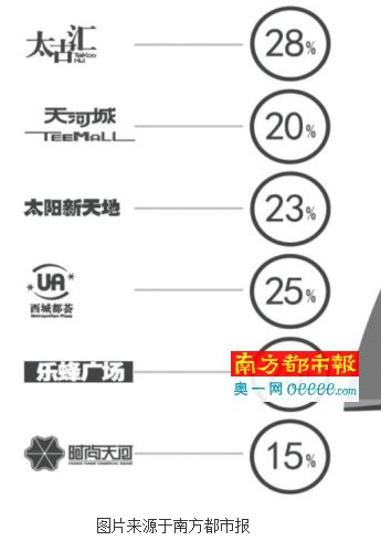 記者粗略統(tǒng)計(jì)了一下,按面積規(guī)模統(tǒng)計(jì),正佳廣場(chǎng)的餐飲規(guī)模占比高達(dá)30%,太古匯、西城都薈、樂(lè)峰廣場(chǎng)的占比則超過(guò)25%;另外天河城、太陽(yáng)新天地的占比超過(guò)20%。