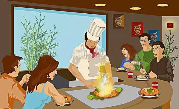 餐廳娛樂(lè)化這很常見(jiàn),如吃飯有人彈奏音樂(lè),堂食有鮑魚(yú)公主服務(wù)之類的。但是讓廚師在顧客面前表演烹飪,并且快速提高翻臺(tái)率的方法,你知道嗎?
