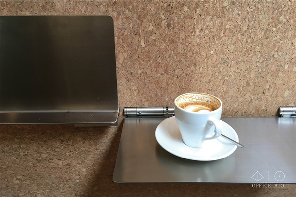 好的收納是為了清爽的視覺(jué)效果服務(wù)的,因此店中才能“顯露”出三塊干凈的面:沒(méi)有雜物的黑色吧臺(tái),咖啡師身后的白墻,西側(cè)的軟木墻面。