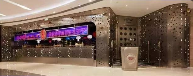 遠(yuǎn)處看像盤(pán)踞在商場(chǎng)里的金屬洞穴,外圍用不銹鋼緊緊包裹,墻壁上安置了碩大的金銀兩色蜘蛛。在進(jìn)門(mén)處,運(yùn)用高科技手段,用水幕再現(xiàn)了一個(gè)逼真的水簾洞。餐桌上每個(gè)蜘蛛都帶上了緊箍咒,這些蜘蛛也成為嘻游記餐廳的標(biāo)志元素。設(shè)計(jì)時(shí)沒(méi)有刻意去塑造西游記的形象,而是用很多插畫(huà)來(lái)表達(dá)現(xiàn)代想象。翻開(kāi)菜單就像是翻開(kāi)一本故事書(shū),菜名都非常有西游記特色,例如“俺老孫最牛”、“女兒國(guó)的春夢(mèng)”、“松茸洋芋紫金缽”等。