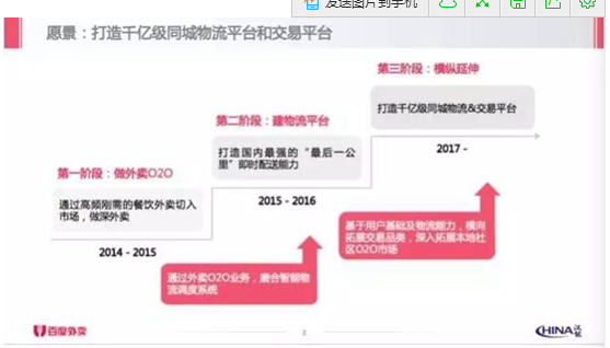 流傳出來(lái)的商業(yè)計(jì)劃書(shū)中,百度外賣試圖把自己包裝為千億級(jí)別的同城物流平臺(tái)
