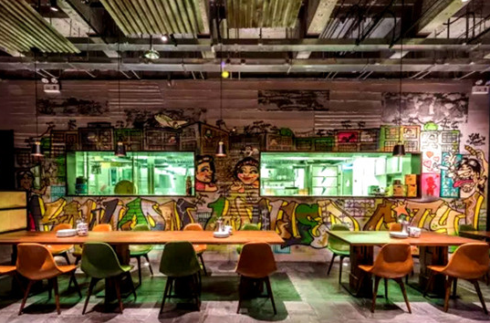 除了復(fù)刻九龍城寨內(nèi)殘破的街道和建筑氛圍,菜式創(chuàng)意也與它的人文環(huán)境有關(guān),“香港是個夾雜著不同族群和大量外來人口的城市,九龍城寨更是個擁有大量移民的地方,所以我想做的是移民們的家鄉(xiāng)菜。”雖然載體依舊是香港的傳統(tǒng)美食,但融合了更多的亞洲風(fēng)味,你甚至還可以吃到墨西哥叉燒牛奶包。