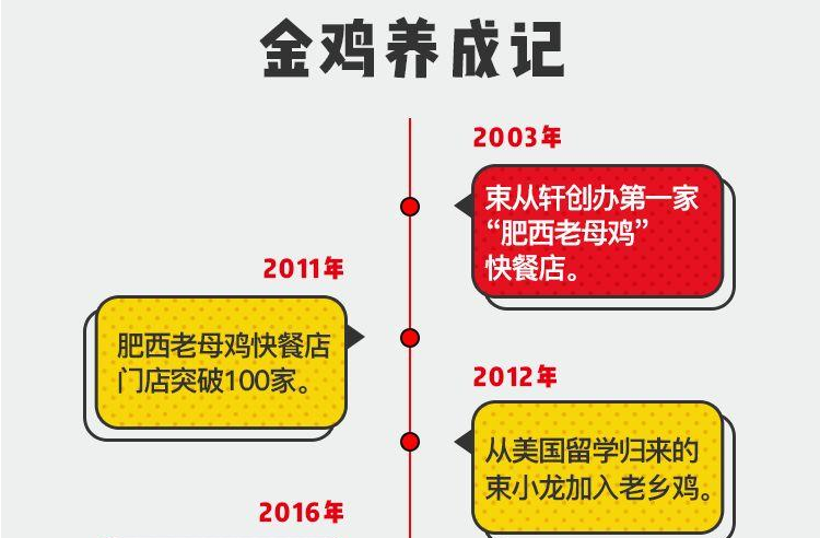 憑借著優(yōu)質的產品以及精細化的管理,2011年,肥西老母雞快餐店門店突破100家。2012年,從美國留學歸來的束小龍加入了進來,給企業(yè)注入了新鮮的血液。