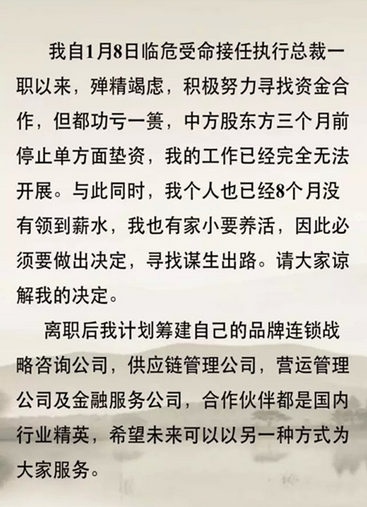 網(wǎng)爆咖啡陪你執(zhí)行總裁辭職信