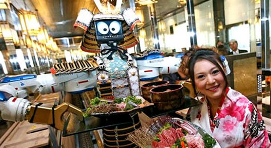 目前來(lái)看,比基尼美女、肌肉男相這些營(yíng)銷策略都不如機(jī)器人的附加值大。開(kāi)個(gè)餐廳,弄幾個(gè)機(jī)器人當(dāng)服務(wù)員玩玩,會(huì)有讓人驚喜的“超現(xiàn)實(shí)感”。關(guān)鍵,這個(gè)“酷”,除能省錢外,還有三個(gè)附加值: