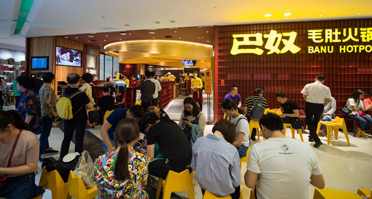 2018年5月16日,在北京東三環(huán)的一處大型購物中心里,巴奴毛肚火鍋開始了第一天的試營業(yè)。當(dāng)天是工作日,晚7點(diǎn)許,商場里人不多,但巴奴門外已經(jīng)有了排隊(duì)的顧客。