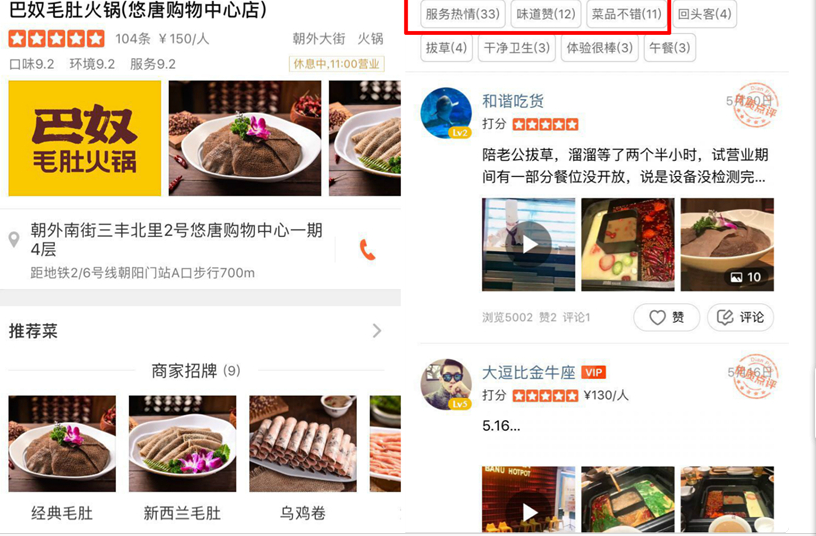 ▲巴奴大眾點(diǎn)評評價(jià)